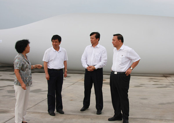 宋董事长听取了中复连众的工作汇报,参观了大浦叶片工业园第八号和十三号生产线,详细了解了中复连众新产品——45.3米、2.0兆瓦风力机叶片的生产工艺。宋董事长对中复连众2008年取得的成绩表示肯定,对中复连众依靠技术创新,建成国内一流的生产线给予了高度评价,同时也对中复连众今后的工作提出四点要求:第一,加强宣传,突出几个第一:第一家实现1.5兆瓦叶片下线的企业、第一家实现2.0兆瓦叶片下线的企业;第一家实现年产1000片兆瓦级叶片企业;第一家实现叶片出口的企业;第一家在海外成立研发机构的叶片制造企业。第二,加强兄弟企业间的合作。中复连众与中复神鹰两个企业,要实现资源共享,相互支持,共同成长;第三,抓紧时间,赶超进度,尽快实现2.5兆瓦、3.0兆瓦叶片的国内生产;第四,加快区域建设,加速沈阳、酒泉、包头分叶片生产基地的建设,扩大市场占有率,同时要密切关注国际风能市场、条件成熟时可以考虑在海外布点生产、进军国际市场。