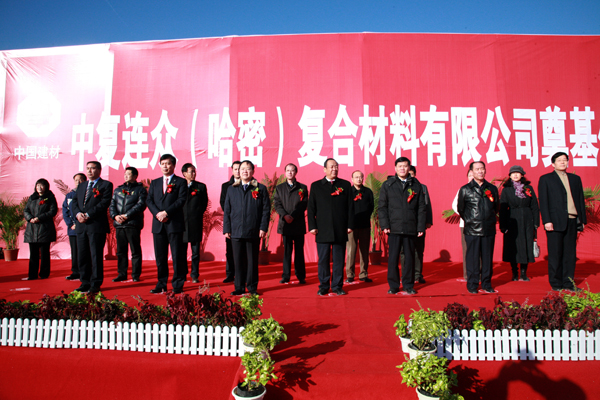 中国建材集团副总经理郭朝民、中国建材报社社长陈才来、中国复合材料集团公司董事长、总经理张定金、哈密地委书记郭连山、哈密地区政协工委主任魏天哲、哈密行署副专员牙森·斯地克等出席奠基仪式。中国复合材料集团公司副总经理、连云港天行官方在线入口公司董事长任桂芳主持仪式。