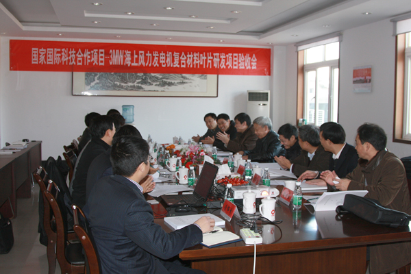 12月 11日,受科技部国际合作司委托,江苏省科技厅组织专家组到中复连众对“3MW海上风力发电机复合材料叶片研发” 国际科技合作项目进行验收。刘卫生副总经理代表项目组向专家组汇报了该项目的实施和完成情况。
