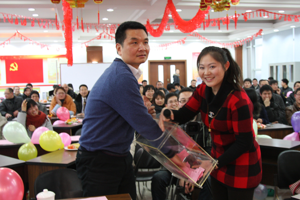 联欢会还特别安排现场抽奖活动,共抽取了2个特等奖、5个一等奖、10个二等奖和20个三等奖。获奖观众五人一组参与了60秒不NG、心有灵犀、疯狂大搜索三项互动活动,“笑”果不断。在带给大家好运的同时,高管还纷纷登台献艺,与职工同乐。乔光辉总经理和行政部吴霏霏带来《北国之春》;王彤兵副总经理独唱《月亮代表我的心》;耿婷芳副总经理、行政部朱维新对唱《祈祷》,一首首经典老歌,一声声祝福,将晚会推向高潮。