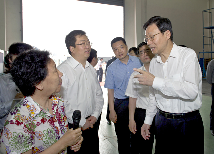 任桂芳董事长向省长汇报了中复连众在中国建材集团、中国复材集团的领导下的快速发展历程。自2006年从德国引进1.5兆瓦、37.5米叶片生产技术以来,中复连众不断加快发展步伐,目前已经可以生产9个系列近三十个叶型的叶片,获得专利35个,其中发明专利15个;自主研发的6.0兆瓦、62米叶片顺利挂机已经于去年10月份顺利挂机。经过5年的发展,公司在国内外建有6个叶片生产基地,已经成为亚洲最大的风力机叶片制造商,强大的技术实力为中复连众赢得市场,稳定发展持续发展提供了不竭源泉。
