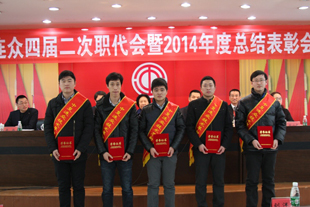 任桂芳董事长充分肯定了公司在2014年度取得的成绩。她说,在大家的共同努力下,中复连众全面超额完成年度各项经营指标,荣获了全国五一劳动奖状,从中国建材集团1113名企业中脱颖而出,荣获中国建材集团首批“六星企业”殊荣,这些成绩的取得,是全体干部职工团结拼搏、真抓实干的结果,真正体现了中复连众人“众心矢志、争创一流”拼搏精神。任董就做好2015年的经营和工会工作,提出四点要求:一是认清形势。宏观经济环境和市场形势的复杂多变,风电行业的逐步回暖,2015年是充满挑战与机遇的一年,大家要坚定发展的信心和决心。二是加快创新。要鼓励员工积极投入小改小革,争做能工巧匠,让钻研业务善思勤奋的员工受尊重。三是提升质量。对照KPI核心指标,不断细化,提高认识,减少返修率,使企业的成本优势、质量优势更加凸显。四是工会要切实履职。工会组织要加强自身建设,在推动民主管理与民主监督、提升职工素质、维护职工权益等方面下功夫,真正成为联系职工群众的纽带和桥梁。