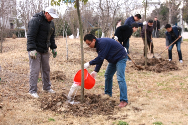3月14日,中复连众启动一年一度的植树绿化活动,来自行政部、财务部、信息管理部等部门的三十余名党员干部和积极分子在董事长任桂芳的带领下,共同在和谐园栽种了一批女贞、紫叶李和木槿等苗木,此前在和谐园栽种的树木全部成活,长势良好。在植树的同时,大家又给园内的其他树木进行了浇水、围土,拣除园内杂物,进一步美化厂区环境。