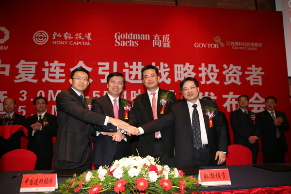 2010年3月30日上午,中国建材集团与弘毅投资、高盛集团、江苏高科技投资集团在江苏省连云港市喜来登酒店举行了隆重的战略投资签约仪式暨3兆瓦55米风电叶片投产、5兆瓦叶片设计启动发布会。